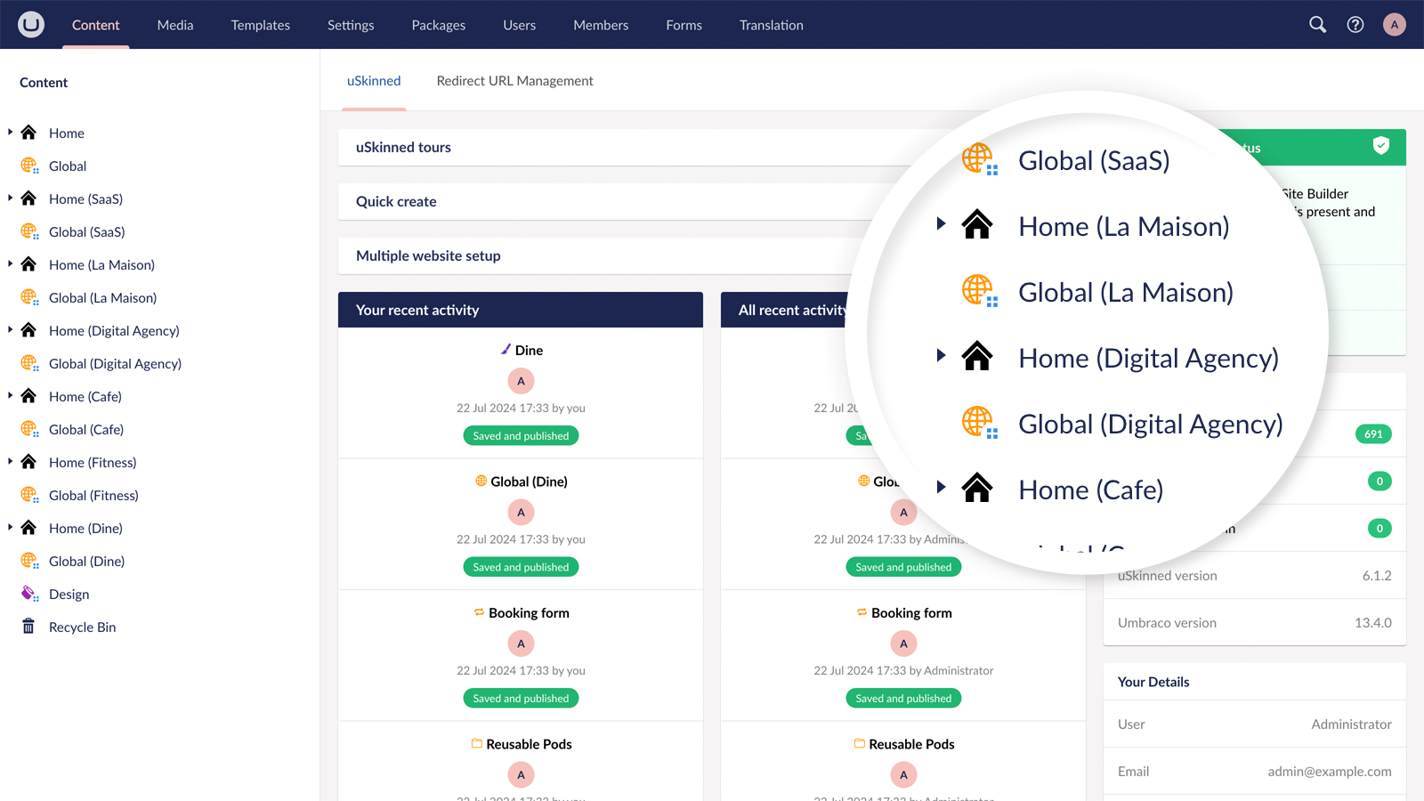 One of the standout features of our pre-designed starter kits and themes is just how customisable they are. You or your clients can tailor these themes to perfectly fit your brand. Like any uSkinned Site Builder powered website, you have complete control over the design and functionality, allowing you to create a unique and professional online presence.