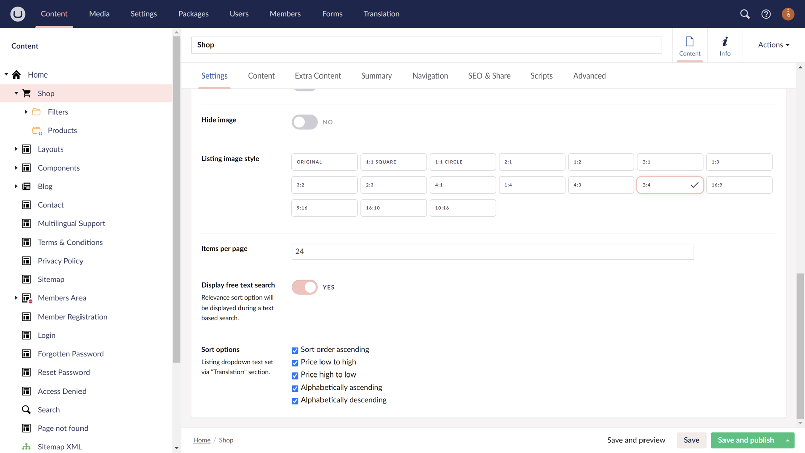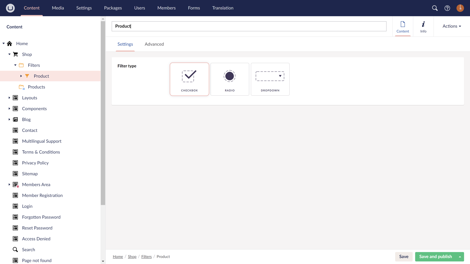 - Shop categories (dropdowns, checkboxes and radio buttons)