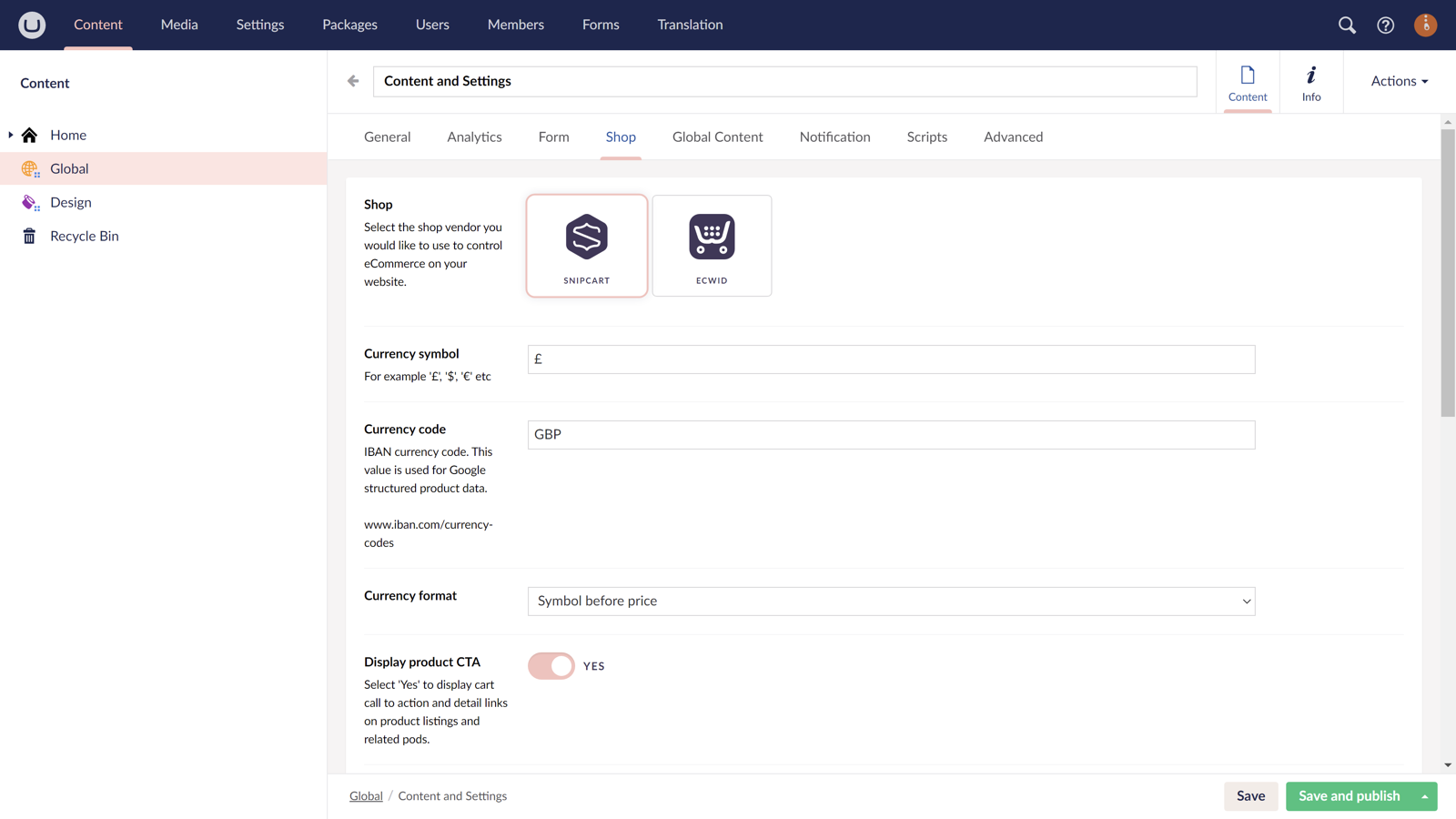 For customers using our existing integration with Ecwid, there is no need to worry. Our new Snipcart integration is simply an option found in Global > Settings. You can continue to use Ecwid with no disruption.