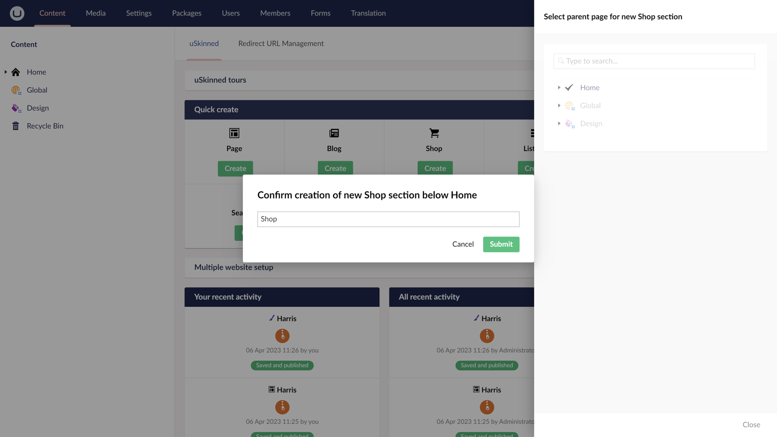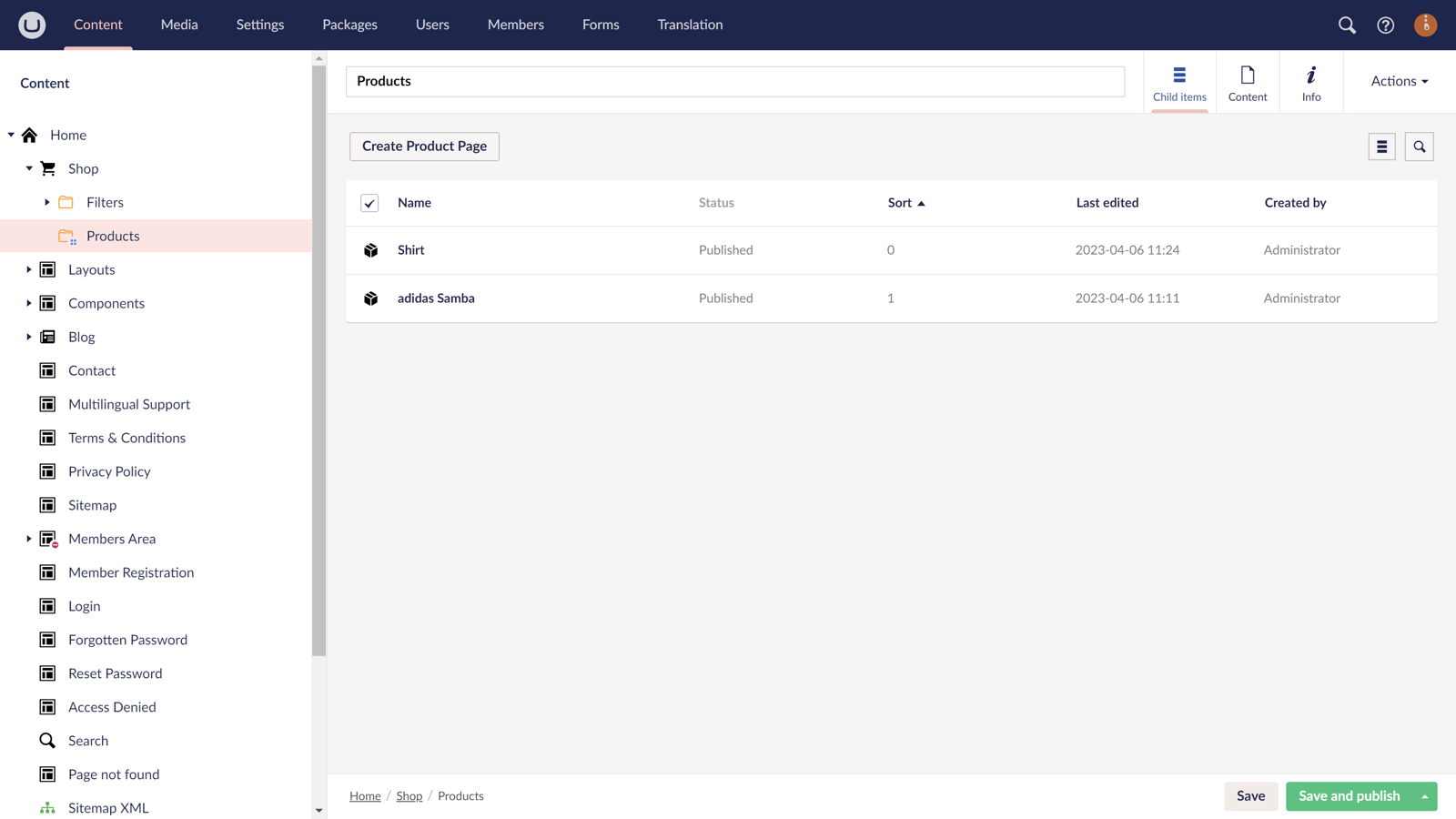 - Unlimited number of child pages.