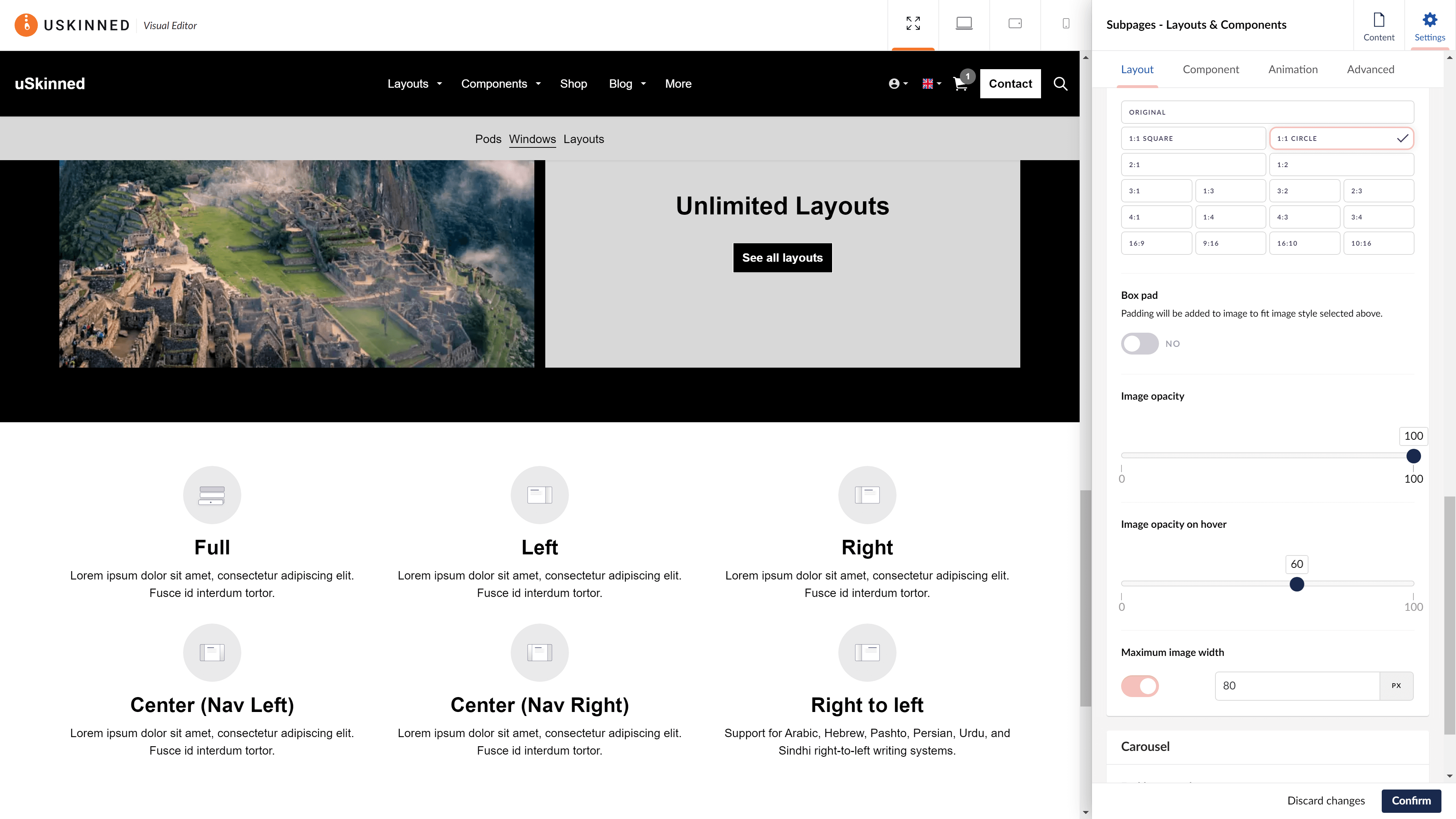 uSkinned Visual Editor — available in uSkinned Site Builder 6.2 and up.
