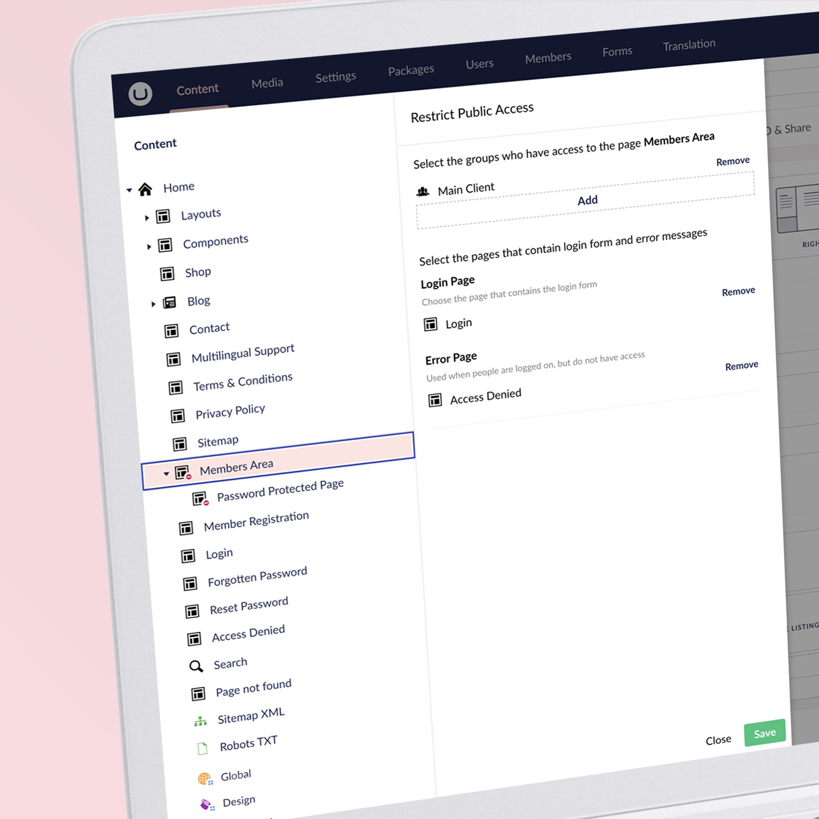 Manage all Members from a central area of the CMS. Include an optional member approval process for all new signups if required.