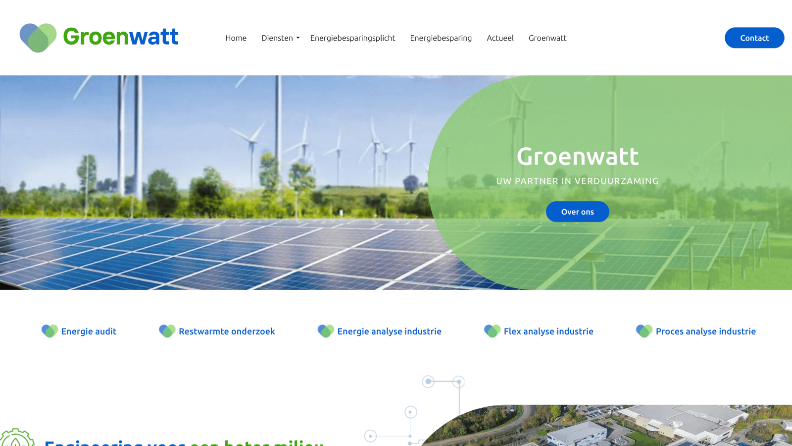 Groenwatt is een website gebouwd met Umbraco, Cloud, Uskinned. HTML/CSS maatwerk. SEO voor energiebesparingsplicht en energiebesparing voor bedrijven. Google ranking is excellent!