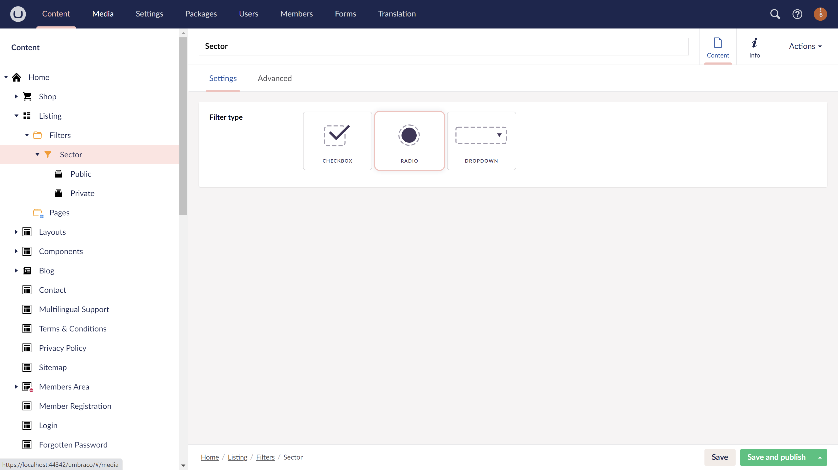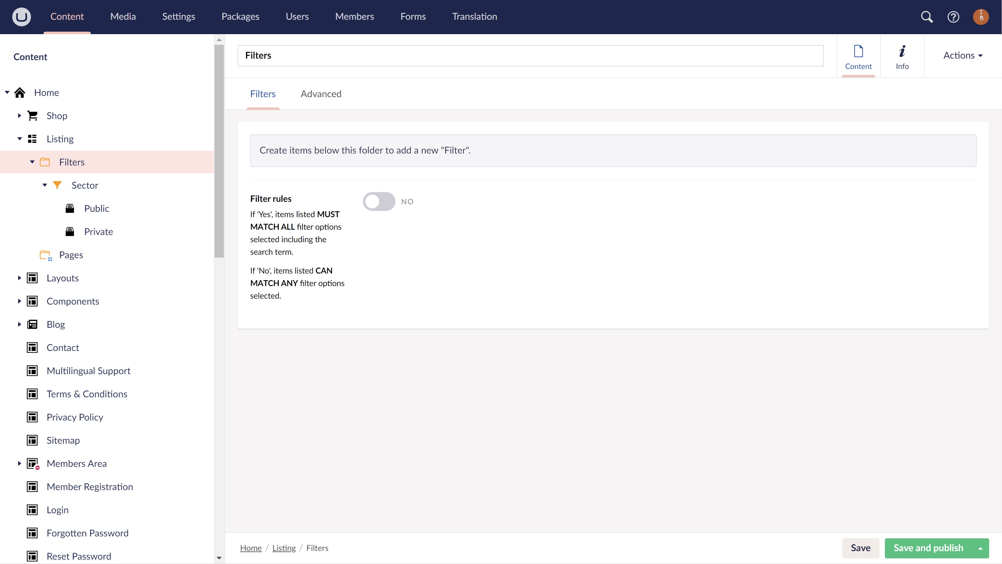 Your Listing node and associated Filters and Pages folders have now been automatically generated.