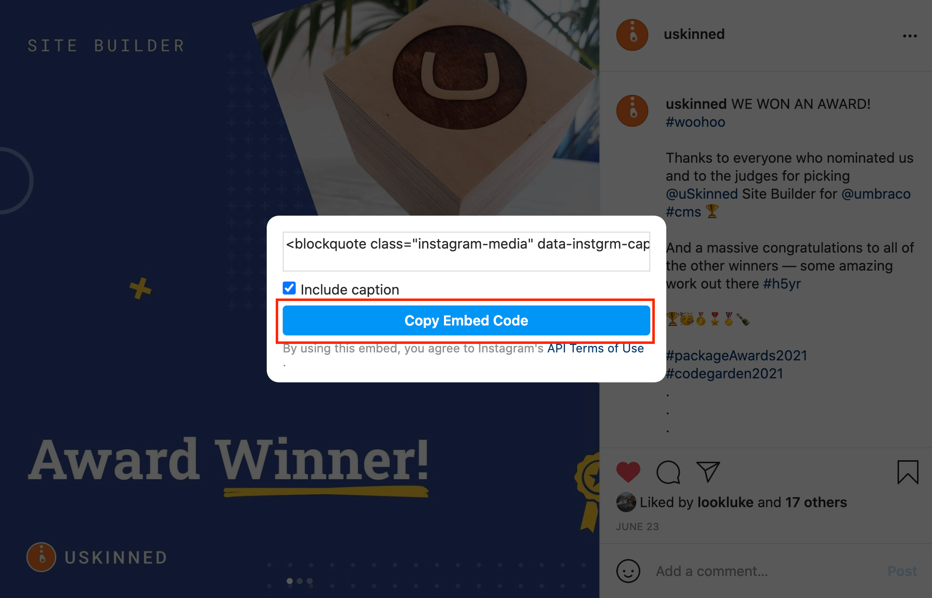 We'll now show you the various ways you can display Instagram posts with uSkinned for Umbraco.