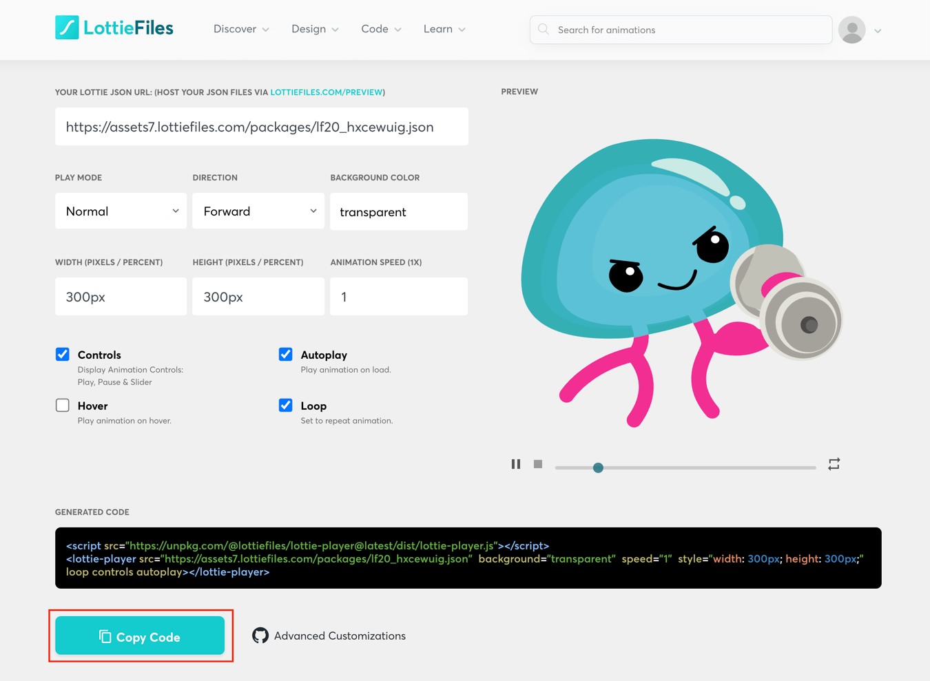 Get the Lottie Animations embed code